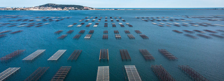 L’étang de Thau est la capitale méditerranéenne de l’élevage d’huîtres...Comme du Land Art,