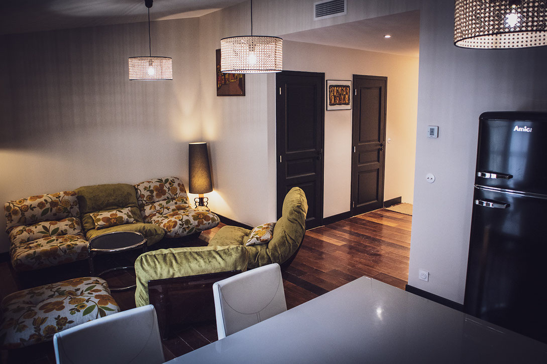 Cet appartement vous séduira avec sa décoration vintage balayant les époques 50, 60, 70, 80 et donnant libre cours à notre passion pour la brocante et les antiquités...